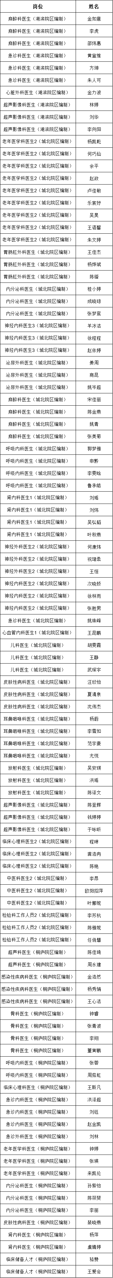 各位入围我院(湖滨、城北、桐庐院区)实践技能测试和面试的考生(入围名单附文末):