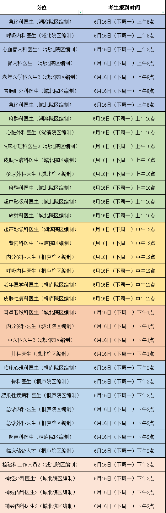 院部面试报到时间:6月16日(下周一) 各岗位报到时间已更新,见下图